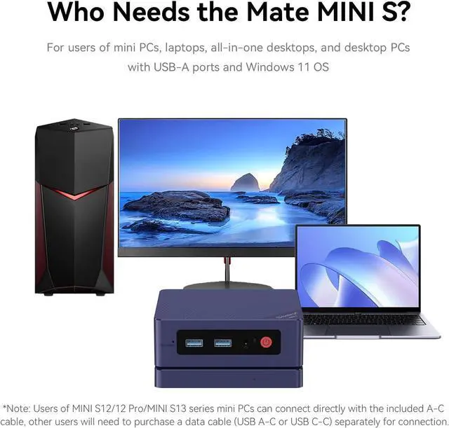 Broad Compatibility & Support: Works with mini PCs, laptops, and desktops on Windows/macOS/Linux (some systems may require drivers). Includes USB-C cable and is backed by a 1-year warranty and 24/7 support. Note: Mate Mini-S focuses on network expansion and does not include M.2 storage slotschoose Mate Mini-A/B for storage features.