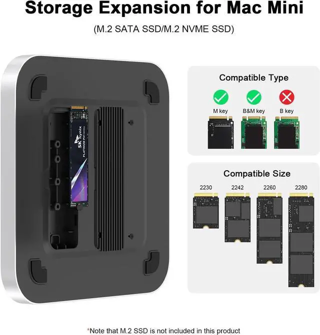 INTERNAL STORAGE EXPANSION - supports M.2 PCIe SATA and NVMe SSD up to 8TB to expand storage for Mac mini and Mac studio.
