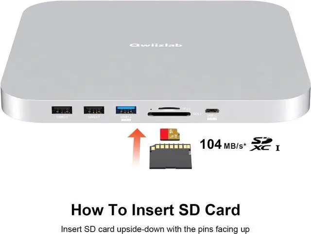 SUPER-SPEED DOCKING STATION - features with 10Gbs USB Type-C port, 10Gbps USB Type-A port, 2x USB2.0 data ports and SD/microSD card readers up to 104MB/s for quick access to essential peripherals.