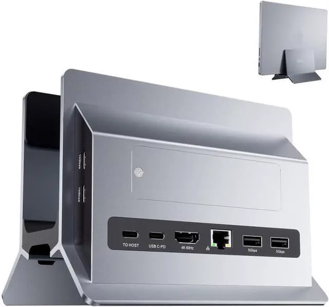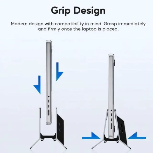 Vertical design saves desk space while providing stable laptop support during use