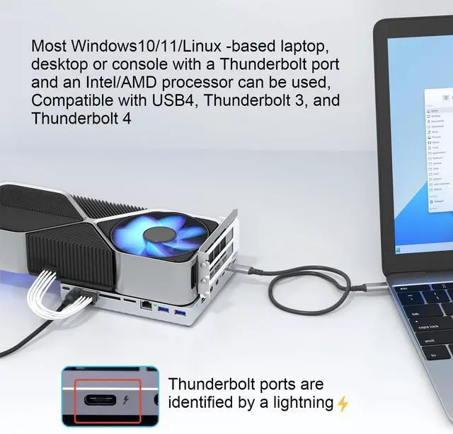 Compatible devices: Most Windows10/11/Linux -based laptop, desktop, or console (including the Lenovo Legion Go) with a Thunderbolt port and an Intel/AMD processor can be used (some console with USB4 may require a BIOS update to enable USB4 functionality), Compatible with USB4, Thunderbolt 3, Thunderbolt 4