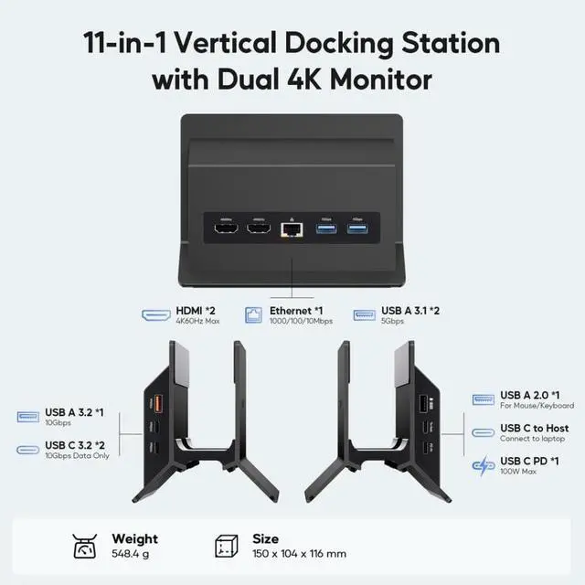 Model supports dual monitor output with HDMI delivering up to 4K resolution at 60Hz for a multitasking experience