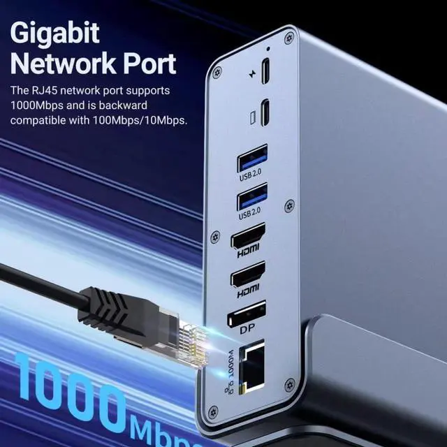 Model supports 15 in 1 functionality integrating multiple ports for versatile connectivity options