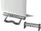 Compact vertical stand design saves desk space while providing device ventilation and easy access to ports