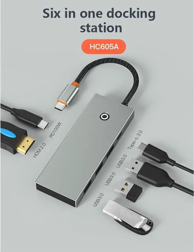 your productivity with this USB TypeC HUB to 4KHDMI-Compatible USB 3.0 Adapter PD100W 6 in 1 TypeC HUB Dock Station, featuring HD4K display, USB 3.0 ports, and PD100W charging capability.