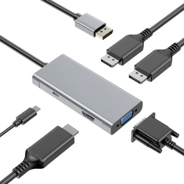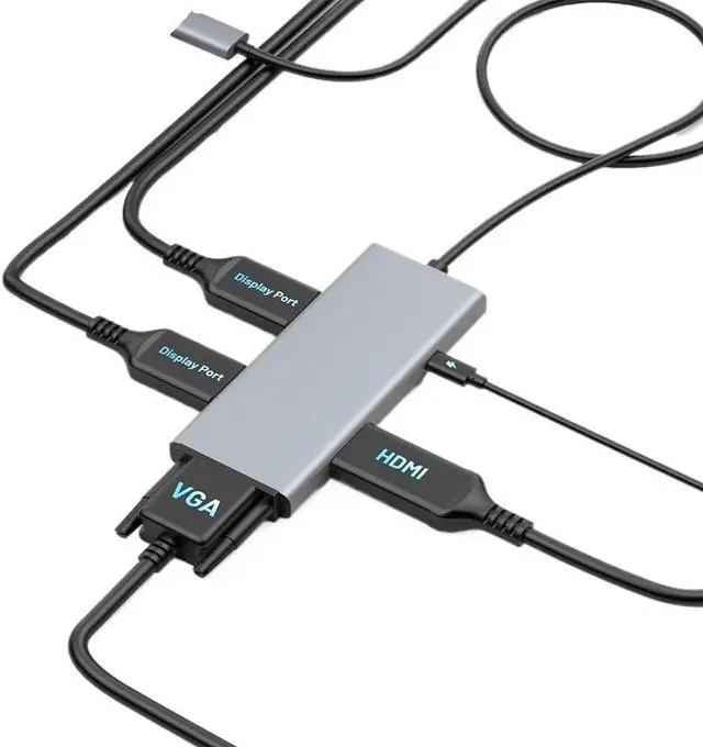 1. **Versatile Multiport Connectivity**: The 4IN1 Docking Station features HDMI-compatible, DisplayPort, and VGA outputs, allowing you to effortlessly multiple displays and maximize your productivity with a seamless multi-monitor setup.