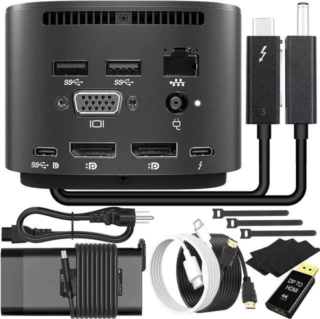 A Thunderbolt Docking Station & A USB Hub The HP Thunderbolt docking station includes multiple ports for ultimate flexibility: USB-A, USB-C, DisplayPort,HDMI Adapter, VGA, Gigabit Ethernet port, and an 3.5mm audio combo jack. Seamlessly connect both modern USB-C devices and legacy peripherals to expand your workflow.