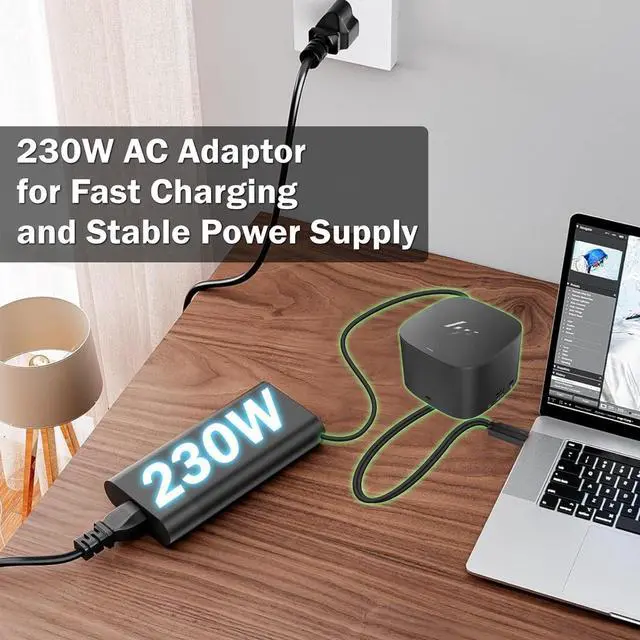 Dual Monitro and Charging Bundle HP Docking Station for Laptop Dual Monitor and Charging supports dual 4K@60Hz for ultra-smooth, high-resolution performance through dual DisplayPort and USB-C connections. Comes with a 230W AC adaptor, delivering stable power to the dock and charging compatible laptops simultaneously for maximum productivity