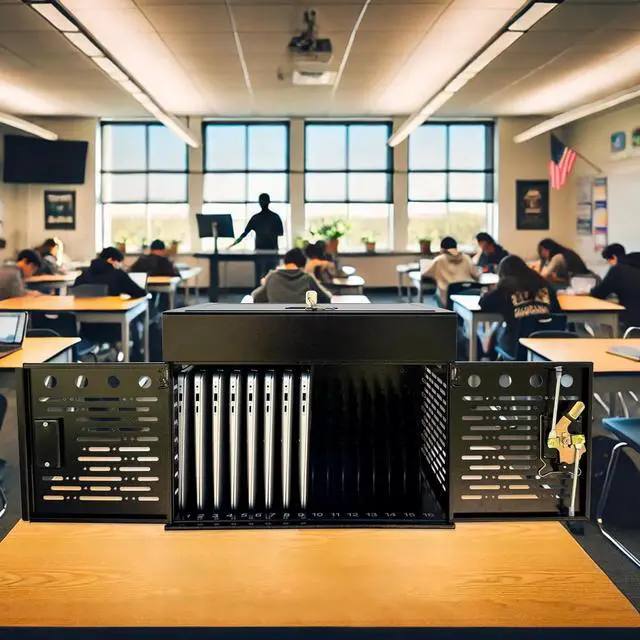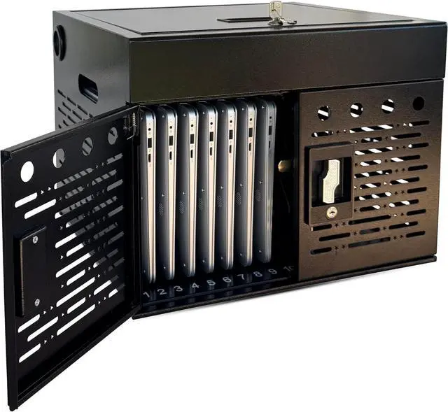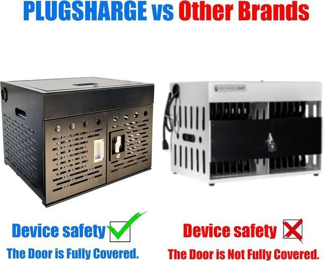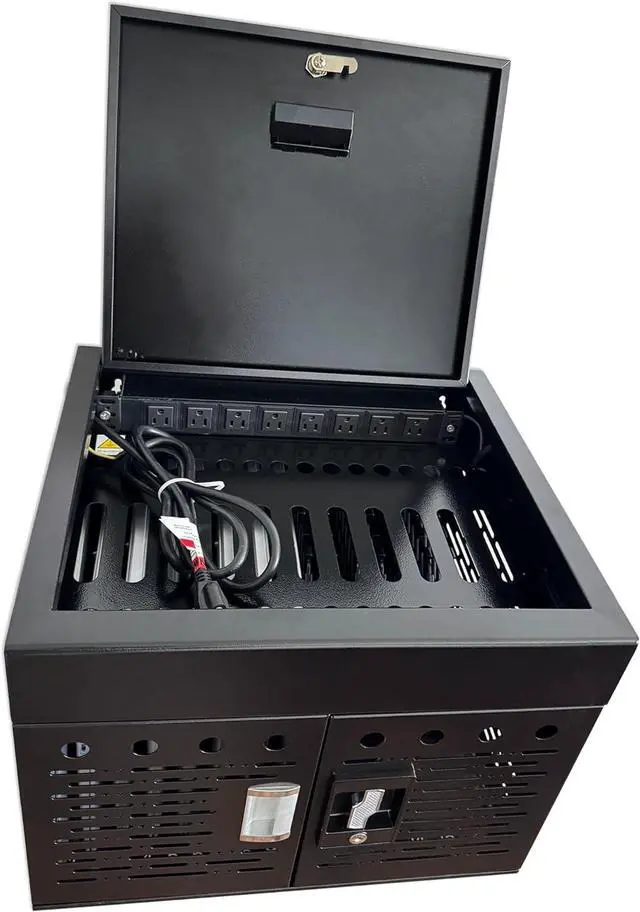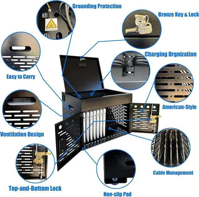 SAFE & DURABLE DESIGN: Built with heavy-duty steel, this charging box includes ground fault protection to guard against electrical shock hazards. Features rounded corners for safety and ventilated sides to prevent overheatingsafe for teachers, kids, and office staff.