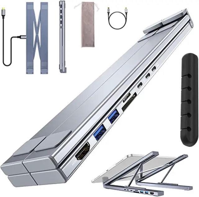 1 Integrated 8 Port Hub--Combines essential ports including 4K HDMI USB A USB C PD card slots allowing easy connection for all your devices in hub