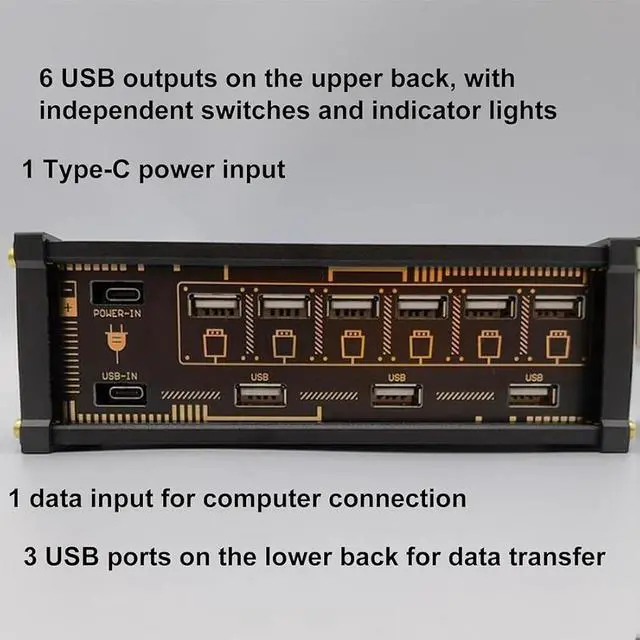 Independent Switch Control: Each USB port is equipped with an independent metal switch, allowing users to individually control each port's on and off, making it easy to manage connected devices while also effectively saving power.
