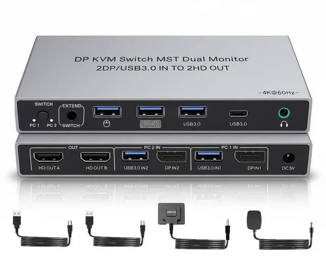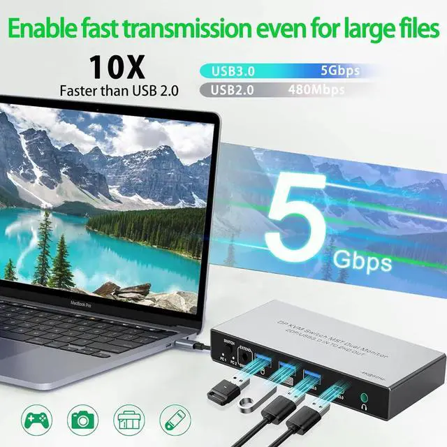 High-Speed USB 3.0 Hub for Expanded Connectivity: If the USB 3.0 port on the active source (PC1 or PC2) is not connected, the USB ports on the output side will have no signal. Equipped with 4 USB ports (3 Type-A + 1 Type-C), delivering transfer speeds up to 5Gbps. Connect your mouse, keyboard, flash drives, hard drives, printers, and other peripheralsall from one central hub.