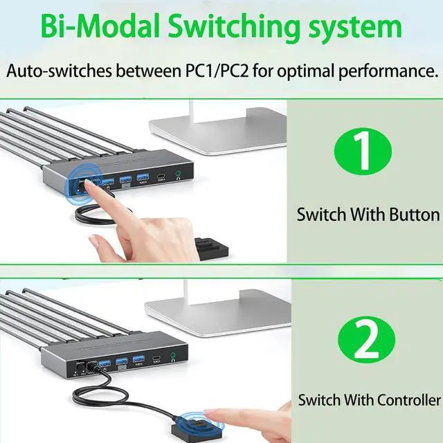 Two Convenient Switching Methods:Switch between computers using either the front-panel button or the included wired desktop controller. Keep your desk clutter-free and switch with ease, right from your workspace.