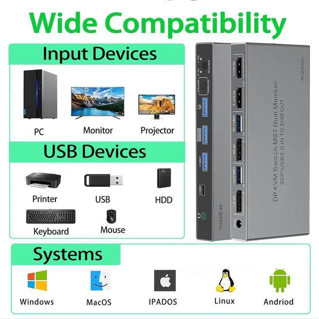 Wide Compatibility, Plug & Play:Works seamlessly with Windows, macOS, and Linux. Compatible with PCs, laptops, gaming consoles (PS5, Xbox, Nintendo Switch), and other DisplayPort-equipped devices. No drivers neededsimply connect and go.