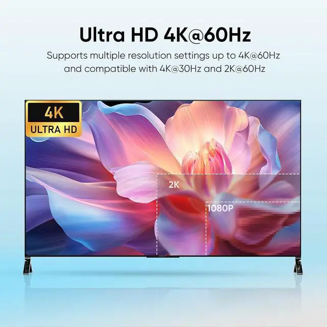 • 4K@60Hz Ultra HD These KVM switch dual monitor supports up to 3840*2160@60Hz and is backward compatible with 3D, 1080p and below. Support HDMI2.0 standard, HDCP2.2 ,maximum data rate 18Gbps. (Note:To achieve the highest resolution, you must ensure that both the source and the monitor, as well as the HDMI cable, support 4K@60Hz)