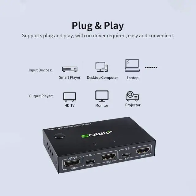 efficient way of HDMI USB switch. Suitable for office, computer room, monitoring host, etc.