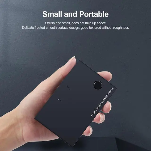 KVM single control modeKVM switch is Gold-plated alloy body. It features an all-metal matte shell and a thick gold-plated interface. Compatible with various HD versions of input, ensuring transmission performance and improving transmission speed.