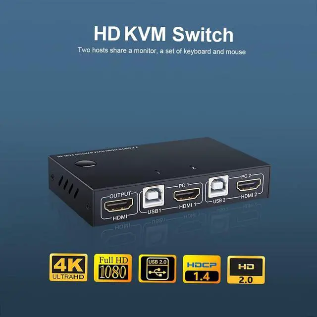 Wide Application: HDMI 2 ports KVM switch adaptive EDID/HDCP decryption,can adapt to a variety of complex application environment. And also for game studios, Security/stock Market Surveillance, office and other scenes.