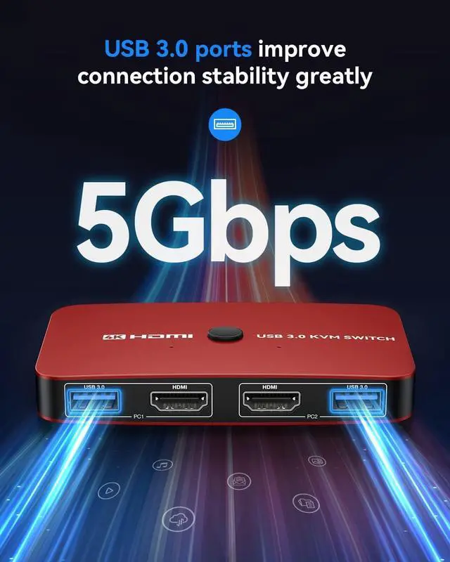 Ultra HD 4K@30Hz Visual EnjoymentThis USB HDMI KVM switch supporting resolution 4K@30Hz, also supports 1080P or lower resolution, mainly depending on the computer's original resolution. Exquisite and realistic display image give a feast for your eyes.