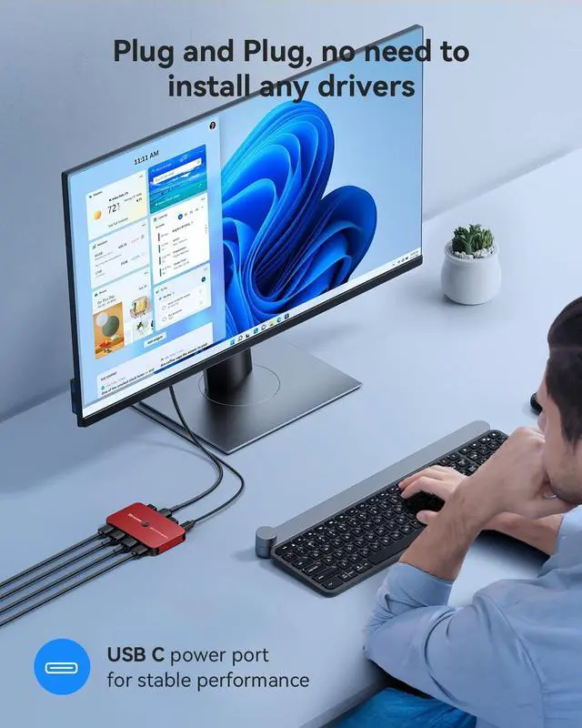 Free UP Your Desk SpaceKvm switch save your desk space when you need to use two computers,you can easily switch between 2 computers and usb devices without all the clutter. No need to plug and unplug hdmi cable and usb cable back and forth anymore,making your work much more convenient and efficient.