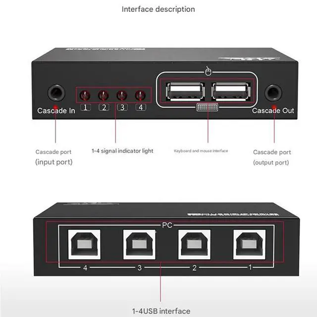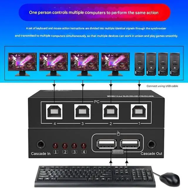 USB switch 4 monitoring computers share keyboard mouse U disk printer host 4 in 1 out wireless mouse and keyboard sharer splitter .