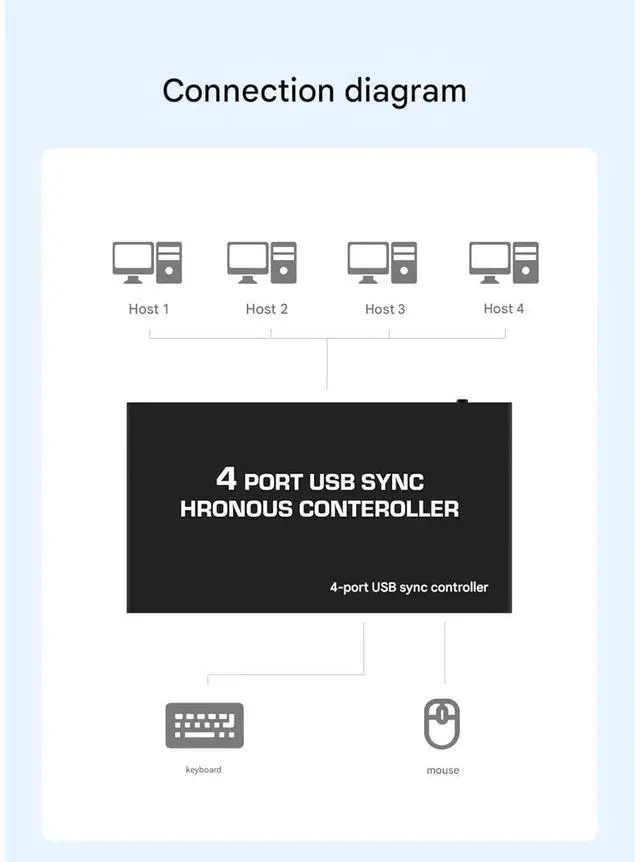 Set of USB keyboard and mouse synchronization control 4 computers, support mouse synchronization, switch across the screen.Used in Multiple Mode You.