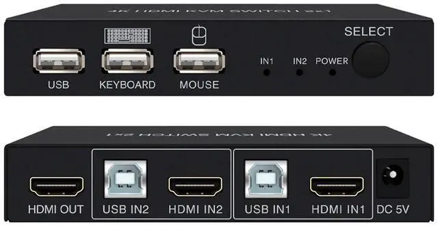 2. 2 In 1 out HDMI KVM switch 4K is compatible with HDMI 1.4 and HDCP 1.4, supports resolution up to 4K@30Hz