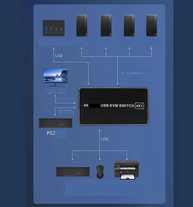 set of keyboard and mouse control 4 hosts Laptop game console. Help you save the desktop space and equipment spending.