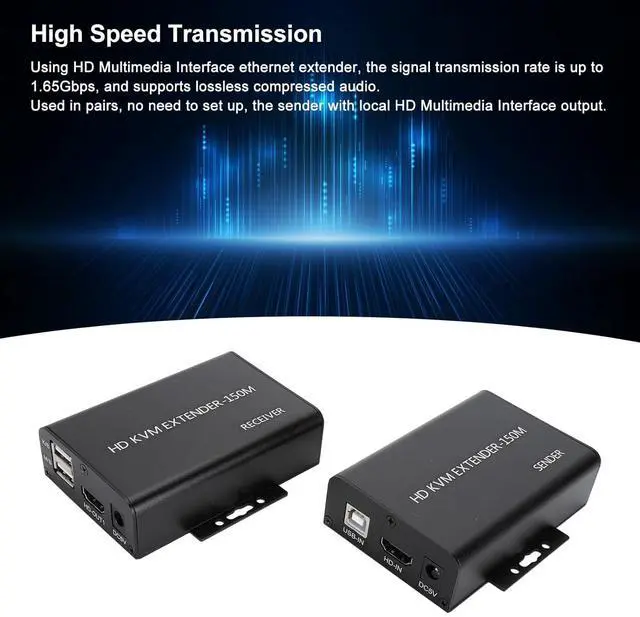 High Speed Using HD Multimedia Interface ethernet extender, the rate is up to 1.65Gbps, and supports lossless compressed sound; used in pairs, no need to set up, the sender with local HD Multimedia Interface output.