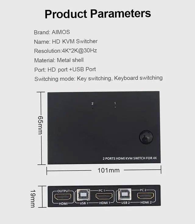 Instructions Service: Support 2 routes of high-definition video source and USB interface implementation switch freely.It can be switched by device button and keyboard,which is convenient and quick.