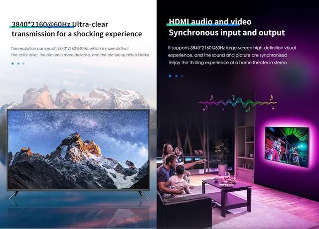B:4K HD Resolution Support: With a resolution of up to 3840×2160@60Hz and a signal transmission rate of 6Gbps, it ensures lossless transmission of 4K video and is compatible with the HDCP protocol.