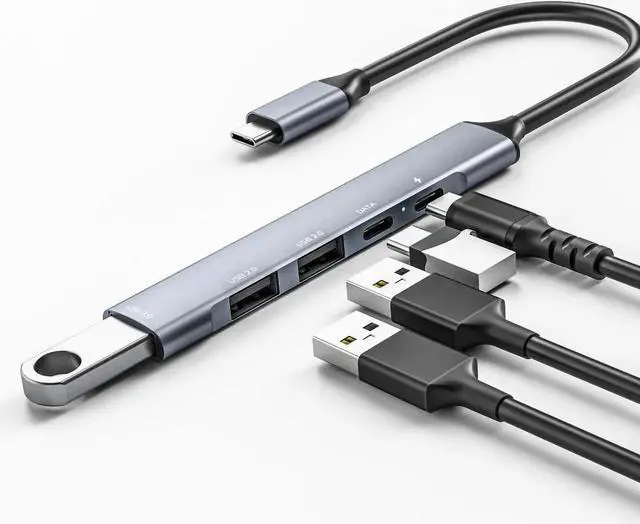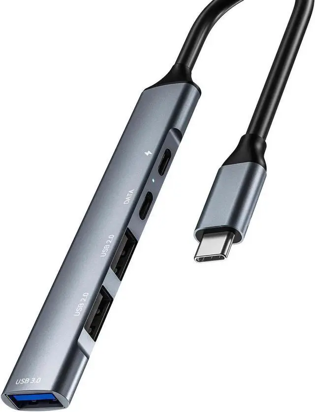 5 in 1 USB C Hub, USB C to USB 3.0 2.0, USB Type C with Data Transfer and 65W PD Fast Charging, Thunderbolt 3 to Multiport USB 3.0 Hub for MacBook Pro/Air 2020, iPad Pro, Dell, Chromebook
