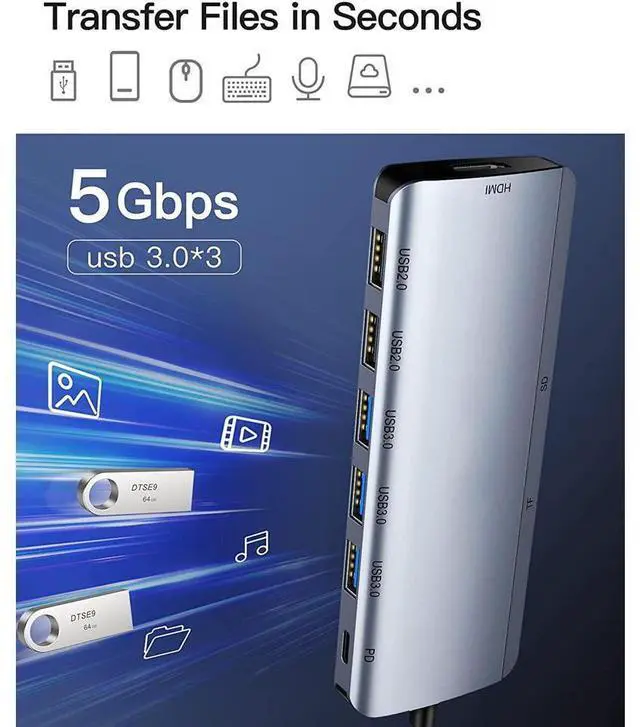 ![Alt view image 7 of 7 - USB C Hub, 9 in 1 USB Hub [Fast reading] USB C Hub Adapter, with 4K HDMI, 100W Power Delivery, 3 USB 3.0 5Gbps Data Ports/MicroSD/SD Card Reader, for MacBook Air, MacBook Pro, XPS, and More eokCXOY](https://c1.neweggimages.com/productimage/nb640/C2AGS25110307B63F26.jpg)
