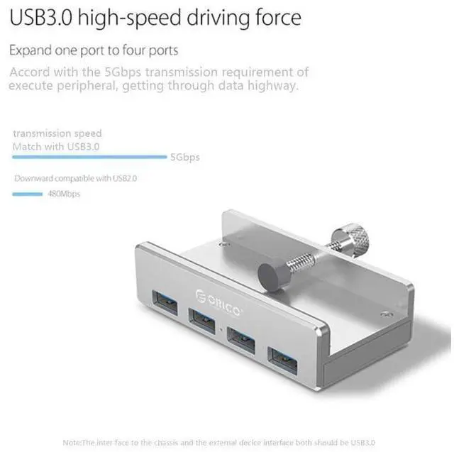 Color: silver Output interface USB 3.0 (theoretical speed 5Gbps) Input interface USB 3.0 Type-A Clip width 10-32mm/ 0.39 - 1.26 in Data line A to A, 100cm/ 39.4 in