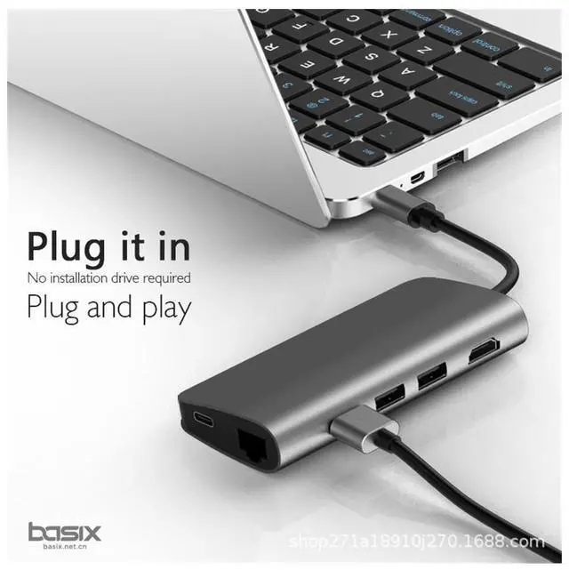 SLEEK DESIGN: Outer shell of Basix USB C Hub is crafted from Aluminum finish and ABS plastic will work as the perfect compliment to your modern laptop, PC or mobile device. Grey color matches Apple products, perfect gift for friends and family. Will improve productivity with greatly enhanced functionality for most of us with several computing and entertainment devices.