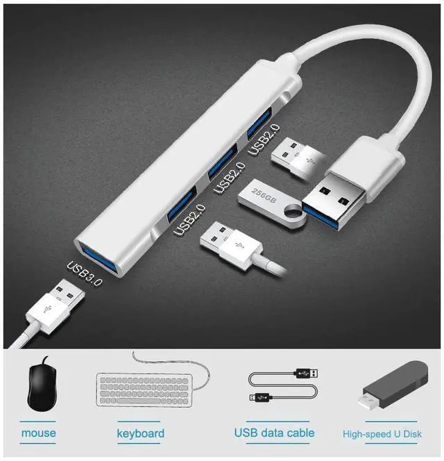4 In 1 Mini USB hub 3.0 Splitter High Speed at 5Gbps With USB3.0*1+USB2.0*3 For Windows10/8/7 Vista XP Mac 10/4/6