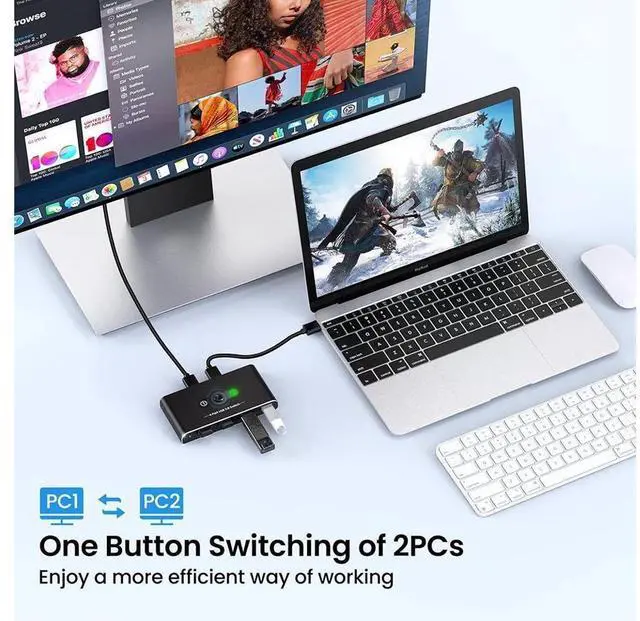This allows you to use the same keyboard and mouse with 2 computers, while also reducing wear and tear on the USB ports from frequent unplugging and plugging.