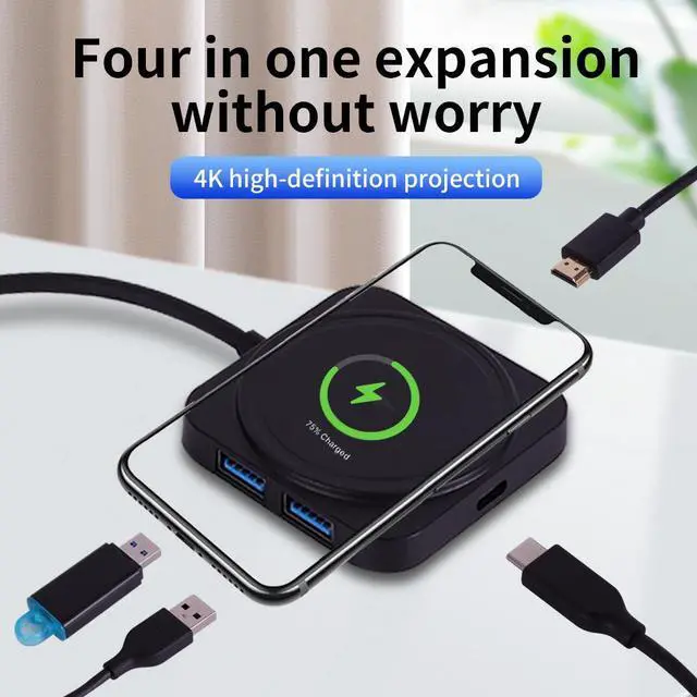 Title: 4-in-1 USB Hub with 100W PD, 4K HDMI & Wireless Charger One Dock, Infinite Possibilities.