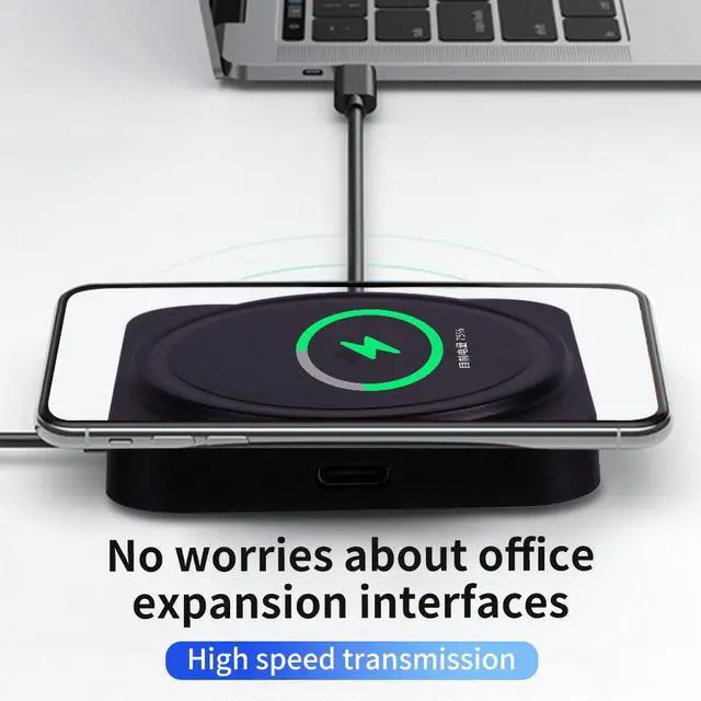 Modern laptops have too few ports. You need to charge your laptop, connect an external monitor, transfer files from a USB drive, and charge your phone but you only have one or two USB-C ports. The 4-in-1 USB Hub solves this problem. With 100W PD charging, 4K HDMI output, high-speed USB ports, and a 15W wireless charging pad, this compact dock turns any laptop into a productivity powerhouse.