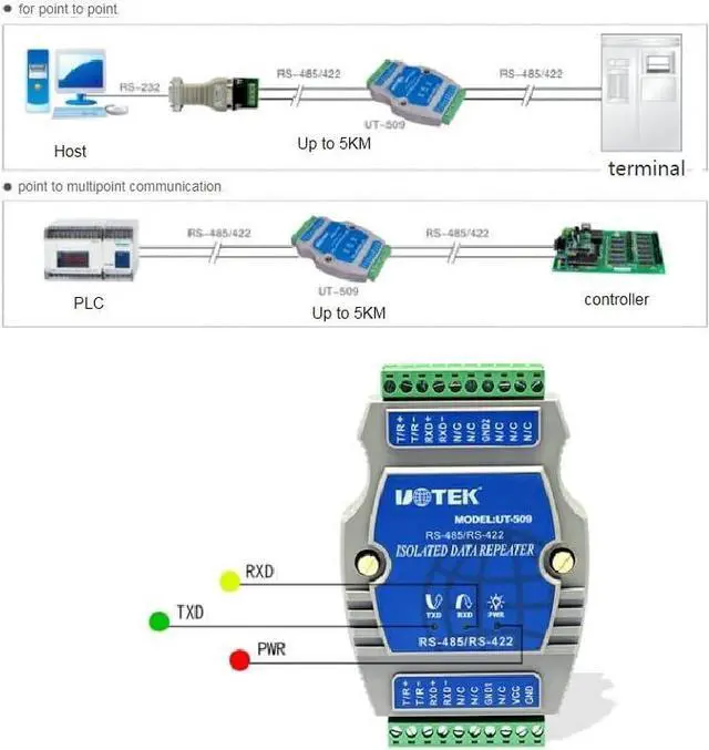 The Baudrate Range: 300bps-115.2Kbps Transmission Distance: 5,000m (9,600bps) Operating Power: 9-30V DC / 350mA Support all communication software, plug & play Compatible with all operating systems