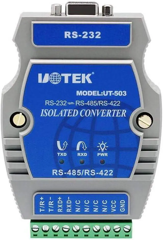 Standards: RS-232C/ RS-485, /RS-422 EIA/TIA RS-232 DB9 female connector input; RS-422/485 10 bits terminal block output