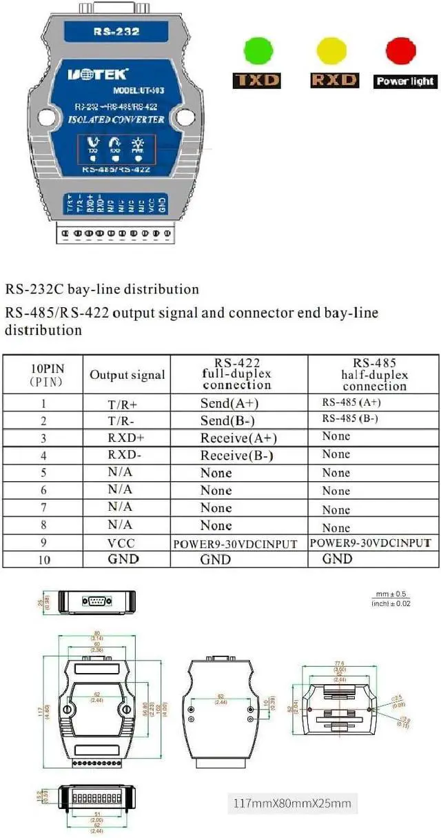 Isolation: isolated voltage 2,500VRMS 500VDC Working mode: asynchronous half-duplex or full-duplex
