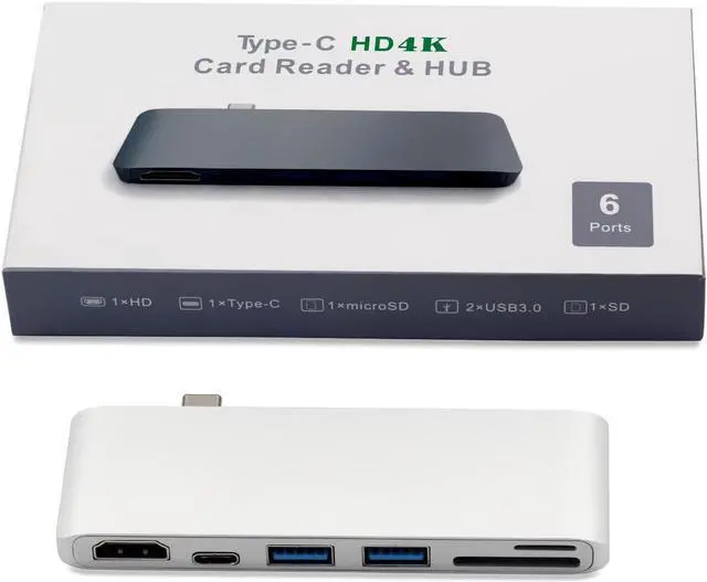 6 in 1 Thunderbolt to USB C Hubs Adapter can support high speed data transmission,pass-through charging,microSD / SD card reader,and have two USB 3.0 extension ports.