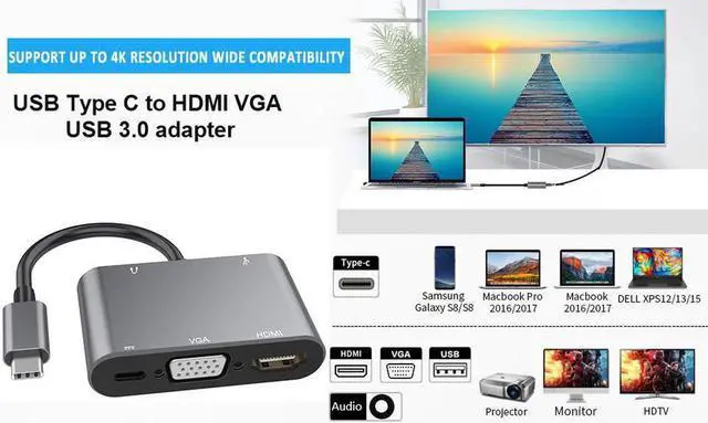 Type C to HDMI VGA Adapter supports Macbook 2016 & 2017, Macbook Pro 2017/2018, Samsung Galaxy S8 / S8 Plus Dell XPS