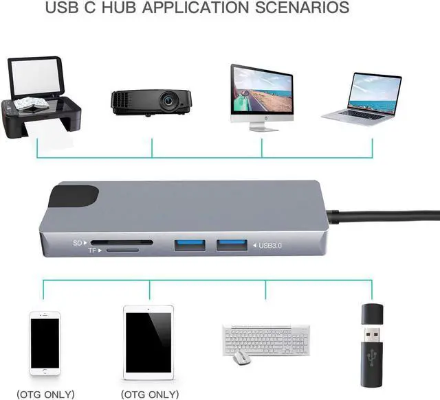9-in-1 USB C Hub Type-C Hub- Compatible with the latest MacBook Pro or USB-C devices with the multiport USB-C hub featuring a Gigabit Ethernet, a USB C charging port, a 4K@30Hz HDMI port, a SD/TF card reader, 3.5mm Audio jack and a VGA port and 2 USB 3.0 Ports
