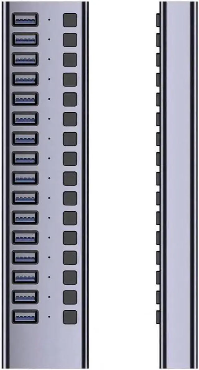 16 Port USB Splitter with 12V/ 7.5A Power Adapter and Individual Switches, High-Speed Data Transfer