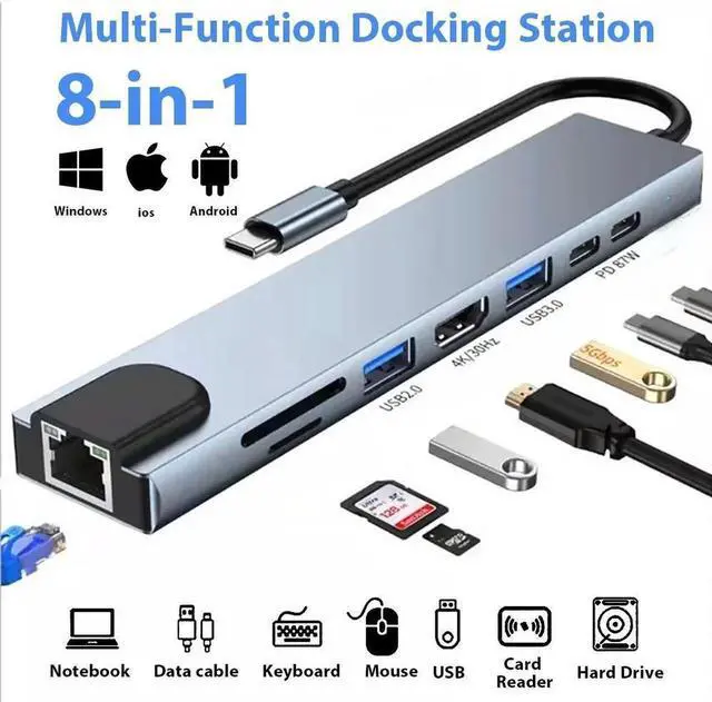 8 in 1 USB C Adapter Docking Station