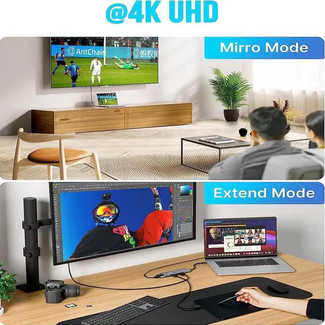 4K@30Hz HDMI to USB C Hub: USB C to HDMI hub can project UHD 4K@30Hz or Full HD1080p 60Hz video to HDTV, Monitor or projectors that bring an immersive 3D resolution experience.