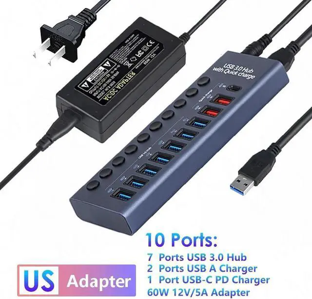 Number of ports: 10 ports (1 port PD/2 ports USB A/7 ports USB 3.0 )