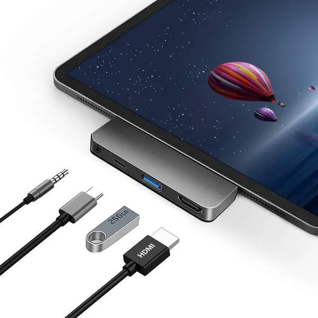 4 in 1 USB C to 4K HDMI Adapter with USB3.0, 3.5mm Headphone Jack, usb-c PD Charging, HDMI Converter. Specially designed for iPad Pro 2018 12.9" 11" to have a more pleasing mobile experience.